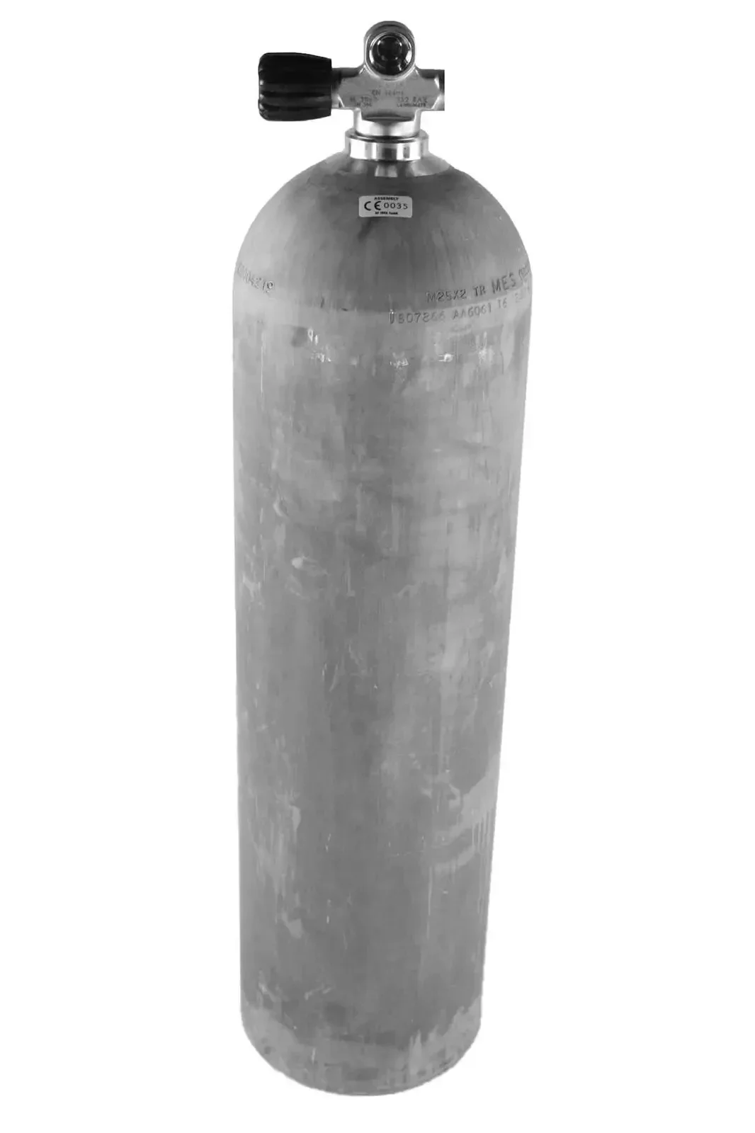 0.85l,1.5lt, 3l, 40cuf, 7lt oder 80cuf, Alu Flaschenset 232 bar, natural Finish, wahlweise mit Scubatec oder San-O-Sub Ventilgarnitur mit linkem oder rechten Handrad (von vorne gesehen).