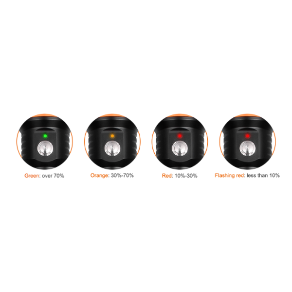 Orcatorch D850 ist eine tragbare Tauchlampe, die eine hohe Leistung mit einer langen Leuchtweite perfekt kombiniert. Mit seinen 5 CREE LEDs und der Superfokus-Optik bietet sie ein aussergewöhnliches Lichterlebnis. Sie verfügt über 3 Beleuchtungsmodi und ist mit dem einzigartigen Seitentaster aus Titanlegierung von OrcaTorch ausgestattet, der einen einfachen und dennoch stabilen Betrieb gewährleistet. Die Batterieanzeige zeigt sofort die verbleibende Batterielebensdauer an. Darüber hinaus ist die einzigartige Verriegelungsfunktion perfekt um eine versehentliche Verwendung zu vermeiden.