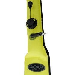 Das Volumen des Auftriebskörpers ist bewusst so gewählt, dass die Boje mit nur einem Lungenzug vollständig befüllt werden kann, alternativ kann die Boje über einen Inflationsschlauch befüllt werden.