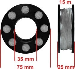 Das Spools ist mit einer hochwertigen Caveline gewickelt und wird mit einem AISI 316 V4A Edelstahl-Doppelender geliefert.