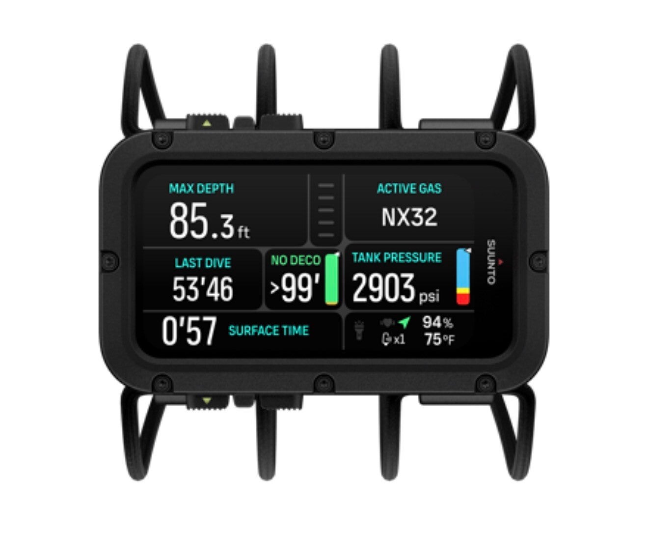 Experience the Suunto Nautic Bungee Cord & Tank Pod bundle: AMOLED display, wireless tank pressure, dual transmitter support, multi-gas capability, GPS tracking, offline maps, and long battery life. Designed for deep exploration.