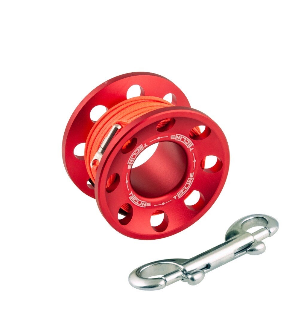 Tecline - SPOOL ALU RED 15 M, WITH SS 90 MM SNAP